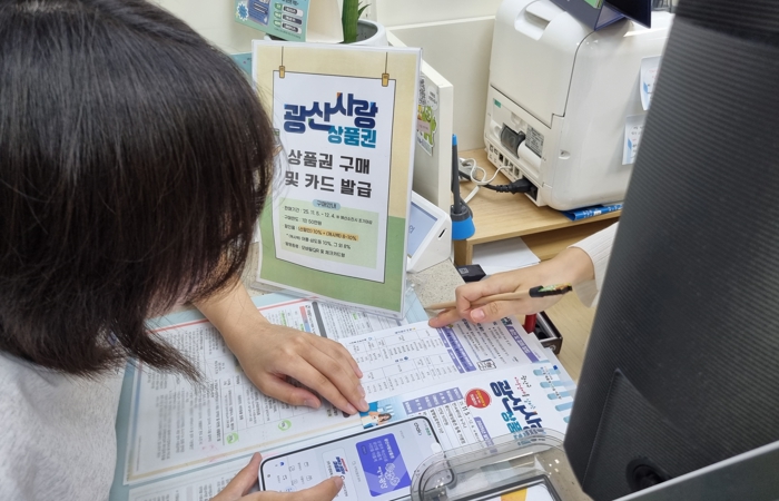 광산구는 농협 14개 지점, 신협 18개 지점, 새마을금고 7개 지점 등 총 39곳과 제휴해 광산사랑상품권을 체크카드 형태로 발급할 수 있도록 돕는다.