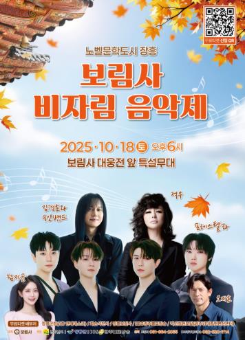 또 감성 보컬의 진수 적우와 Mellow 현악 3중주는 고찰의 풍광과 어우러지는 서정적인 선율을 들려줄 예정이다.