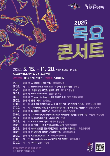 ‘목요콘서트’ 입장료는 1인당 5,000원이며, 수익금 전액은 공연팀에게 전달된다.