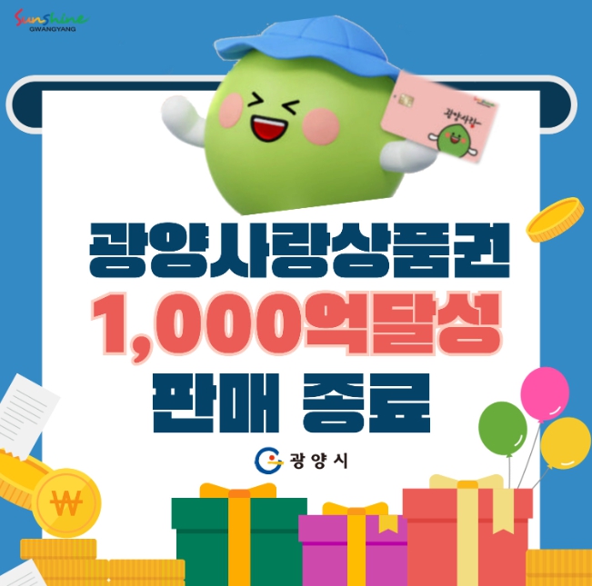 정해종 투자경제과장은 “시민 여러분의 참여와 관심 덕분에 광양사랑상품권이 목표를 달성할 수 있었다”며 “앞으로도 시민의 소비심리 회복과 지역 상권 활력 제고를 위해 광양사랑상품권을 더욱 내실 있게 운영하겠다”고 말했다.