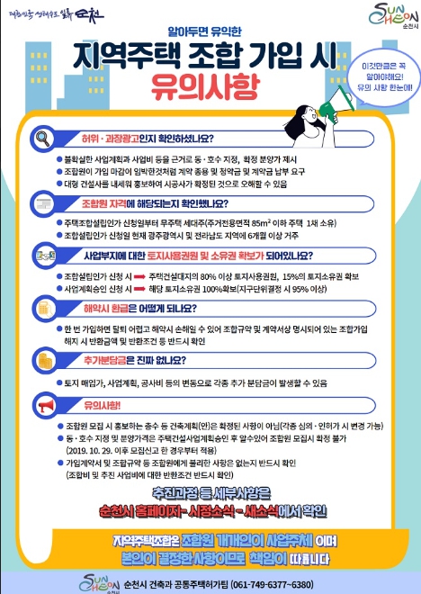 시 관계자는 “지역주택조합 사업은 추진 과정에 따라 위험과 부담이 조합원에게 미칠 수 있다”며 “가입 시 계약 내용을 꼼꼼히 확인하고 신중하게 결정해달라”고 당부했다.