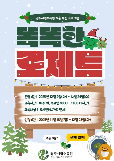한편, 광주시립수목원은 2026년에도 초등학생 방학 기간에 맞춘 계절별 교육프로그램을 운영하는 등 어린이들의 자연 체험 기회를 지속적으로 확대할 계획이다.