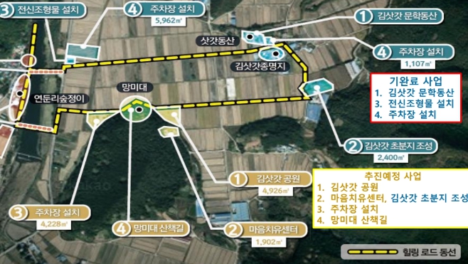 이에 군은 김삿갓 초분지 정비, 주차장 조성, 김삿갓 로드 조성 등과 함께 스토리텔링 및 힐링 프로그램 운영 등 콘텐츠 개발을 병행해 관광객의 체류 시간과 만족도를 높일 계획이다.