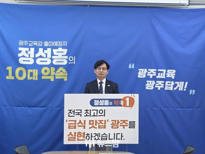 정성홍 전 광주광역시교육감 선거 민주진보 단일후보는 23일 광주시교육청 브리핑룸에서 기자회견을 열고 ‘광주교육 일자리 1만 5,000개 창출’공약을 발표했다.