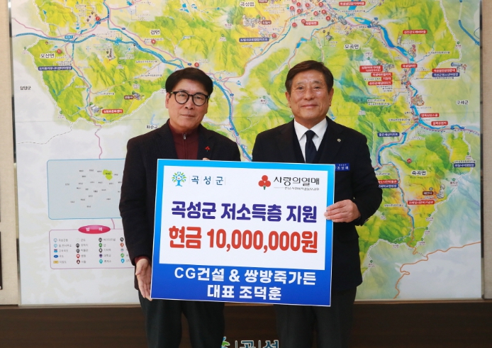군 관계자는“꾸준히 나눔을 실천하고 계신 CG건설·쌍방죽가든 조덕훈 대표님께 깊이 감사드린다. 기탁하신 성금은 전남사회복지공동모금회를 통해 곡성군 저소득층 등 꼭 필요한 곳에 쓰일 수 있도록 하겠다.”라고 말했다.