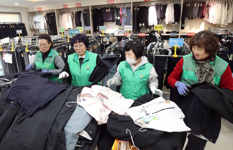 새마을부녀회 소속 자원봉사자가 상주해 학부모와 학생들이 적합한 교복을 찾을 수 있도록 돕는다.
