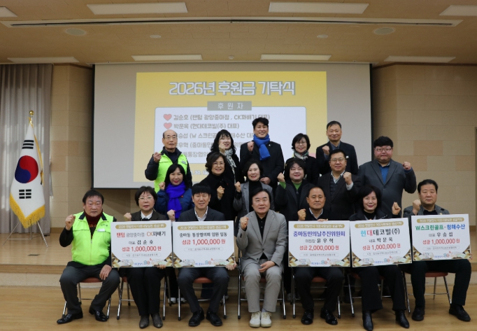 1월 26일 중마동통장협의회 임원진의 100만 원 기부로 포문을 열었고, 1월 30일에는 5개 기관·단체가 참여해 총 600만 원의 후원금을 전달하는 지정기탁식을 진행했다.
