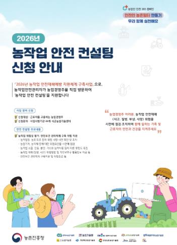 주요 내용은 ▲농작업 위험성 평가 ▲농기계 및 작업 환경 안전 점검 ▲소음·분진·농약 등 유해 요인 확인 ▲농작업 안전관리 개선 방안 안내 등으로, 농업인이 현장에서 바로 적용할 수 있는 맞춤형 컨설팅으로 구성됐다.