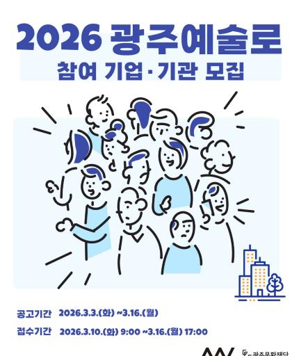 공모기간은 ▲기업·기관은 3월 3일부터 16일까지 ▲리더예술인은 3월 24일부터 4월 7일까지 ▲참여예술인은 4월 28일부터 5월 11일까지다.