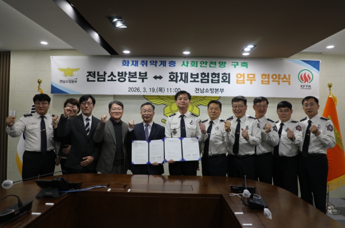 전남소방본부는 19일 한국화재보험협회와 지역사회 중심의 실질적인 화재 예방 체계 구축을 위한 업무협약(MOU)을 체결했다고 밝혔다.