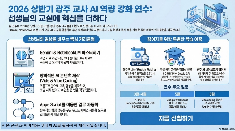 이와 함께 AI 활용 자격 과정과 연계해 교원의 디지털 전문성을 강화하고, 오는 6월에는 교사들이 팀을 이뤄 AI 기술을 수업과 행정 업무 혁신에 적용한 사례를 발표하는 행사도 열 예정이다.