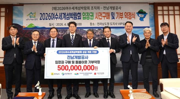 이번 약정에 따라 전남개발공사는 전남사회복지공동모금회를 통해 5억원 규모의 2026여수세계섬박람회 입장권을 구매하고, 해당 입장권은 향후 전남 22개 시·군 문화 취약계층 등에 전량 지원될 예정이다. 또 조직위원회는 정상가 대비 30% 할인된 가격을 적용해 지원 효과를 높이기로 했다.