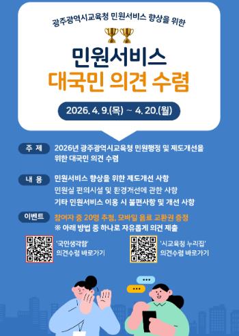 이번 의견 수렴은 국민의 다양한 목소리를 민원행정과 제도개선에 반영해 광주교육 민원서비스 만족도를 높이기 위해 추진됐다.