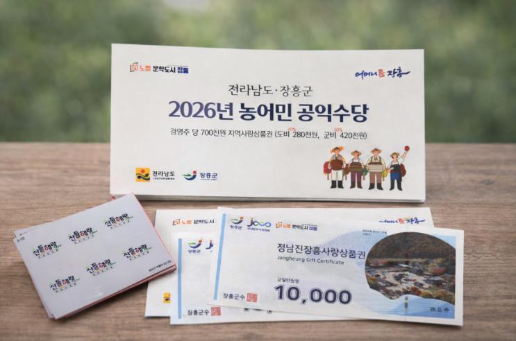 2026년 공익수당은 ‘장흥사랑상품권’으로 지급되며, 해당 상품권은 정책 발행분으로 지역 내 시장, 마트, 음식점 등 장흥군 가맹점에서 사용이 가능하다.