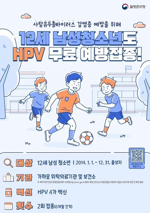 이번 사업은 기존 12~17세 여성 청소년과 18~26세 저소득층 여성 대상에 12세 남성 청소년까지 추가해 HPV 감염과 생식기 사마귀, 항문암 등 관련 질환 발생을 예방하기 위해 추진된다.