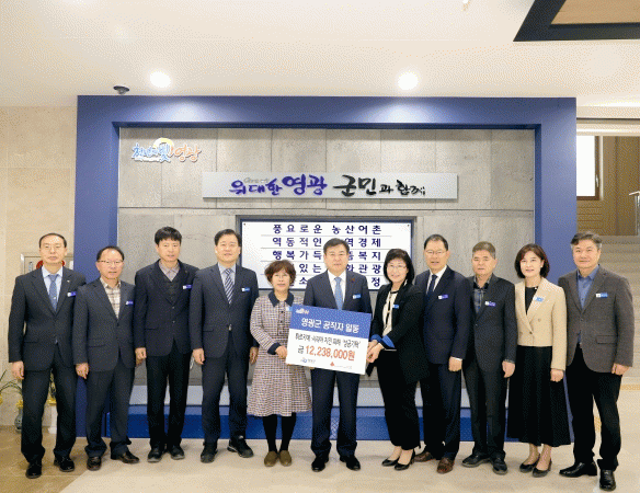 지난달 17일부터 28일까지 실시한 성금 모금에는 강종만 군수를 비롯한 1,000여 명의 영광군청 공직자의 자발적인 참여로 진행됐으며, 소중하게 모아진 성금은 국제적인 재난으로 고통을 받고 있는 튀르키예?시리아 이재민을 위한 식수와 생필품 및 난방용품 그리고 피해 어린이 구호와 치료를 위한 의료 보건 지원 등에도 사용될 예정이다.
