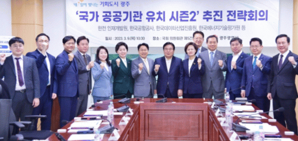 광주광역시는 9일 국회 의원회관에서 지역 국회의원들이 참석한 가운데 ‘국가 공공기관 유치 시즌2 추진 전략회의’를 개최했다.