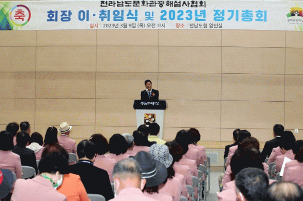 서 의장은 축사를 통해 “2002년 창립한 전남 문화관광해설사 협회는 지역의 문화관광자원에 대한 스토리를 발굴하고 해설기법을 개발하는 등 해설사의 역량 강화에 기여해 왔다”며 “그 덕분에 전남을 찾는 관광객이 6천만 명을 넘어섰고 관광객의 만족도도 높아졌다”고 말했다.
