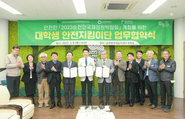이날 행사에는 노관규 이사장(순천시장)과 성동제 순천제일대학교 총장, 김성홍 청암대학교 총장 직무대행이 참석했다. 조직위와 양 대학교는 안전학과, 보건학과, 소방학과 등 재학생으로 구성된 50명의 안전지킴이단 모집부터 교육, 운영까지 안전한 행사 운영을 위해 적극 협력하기로 했다.