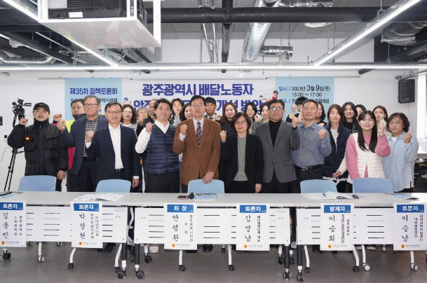 이번 토론회는 광주광역시의회 주최로 이승희 광주청소년노동인권센터장이 발제에 나섰으며, 토론자는 이승남 비정규직지원센터 대외협력국장, 김영남 배달대행업체 대표, 박창현 라이더유니온 광주전남지부장, 김용만 광주광역시 노동정책관이 참여했으며 좌장은 안평환의원이 맡아 진행됐다.