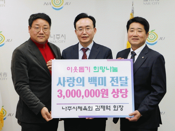 윤병태 시장은 “지역 아동들을 위한 뜻깊은 나눔을 실천해준 김 회장께 감사드린다”며 “체육 발전과 더불어 지역사회와 함께하는 체육회가 되길 기대한다”고 말했다.