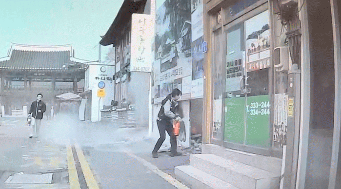 경찰관이 화재 진압을 시작하자 주변에 있던 시민들이 소화기를 가져다 주는 등 도움을 주기 시작했다. 소화기에 이어 물양동이에 물을 떠서 화재 진압에 도움을 주는 시민까지 나타나 높아진 시민의식을 확인할 수 있었다.
