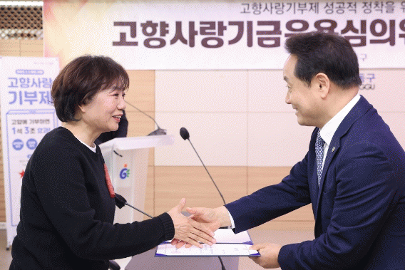 이날 부구청장을 위원장으로 한 위원회에서는 각계각층 전문가 10명이 참석한 가운데 ▲고향사랑기부제도 안내 ▲2023년 고향사랑기금운용계획(안) 심의 ▲고향사랑기금 사업 논의 ▲기타 고향사랑기부제 운영 관련 의견수렴 등 시행 석 달째를 맞은 고향사랑기부제의 성공적인 정착을 위한 심도 있는 논의를 진행됐다.