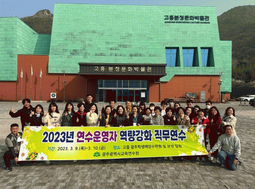 광주교육연수원 채경숙 원장은 “이번 연수로 타 기관과 교류를 통한 새로운 아이디어 공유와 다양한 전문성을 갖춘 연수운영자로서 발전의 계기가 되길 바란다”며, “2023년 새롭게 출발하는 광주교육의 일원으로써 다양성을 품은 실력 광주교육 실현을 위해 전직원이 힘을 모아주길 당부한다”고 말했다.