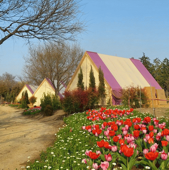 특히 숙박동은 전체가 삼나무로 지어져 은은한 향을 뿜어내고 벚꽃, 튤립, 양귀비, 청보리 등 봄꽃과 어우러져 정원에서의 특별한 하룻밤을 선사한다.