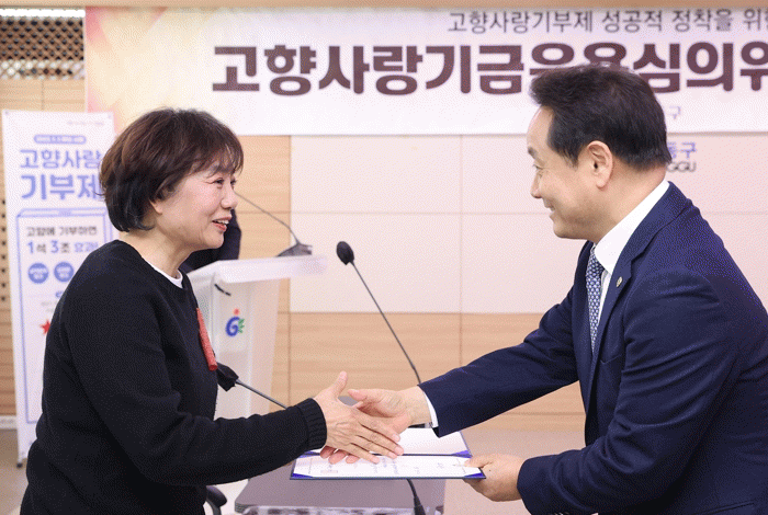 이날 부구청장을 위원장으로 한 위원회에서는 각계각층 전문가 10명이 참석한 가운데 ▲고향사랑기부제도 안내 ▲2023년 고향사랑기금운용계획(안) 심의 ▲고향사랑기금 사업 논의 ▲기타 고향사랑기부제 운영 관련 의견수렴 등 시행 석 달째를 맞은 고향사랑기부제의 성공적인 정착을 위한 심도 있는 논의를 진행됐다.