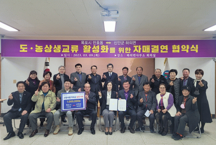 신안·목포지역 상호교류 활성화와 상생발전의 토대를 마련하기 위한 것으로 40명이 참석한 이날 협약식에서 양 단체는 다양한 분야의 정보를 공유하고 교류할 수 있는 방안을 모색했다.