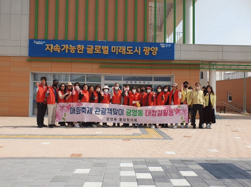 또한, 광영동은 지난 10일 다압면 일원에서 개최되는 매화축제와 관련하여 지역 내를 방문하는 관광객에게 쾌적하고 청결한 도시 이미지 제고를 위해 광영동 통장들과 함께하는 대청결 활동과 쓰레기 불법투기 근절 홍보 캠페인을 전개했다.