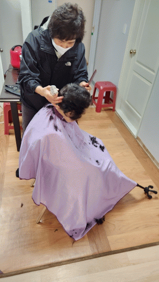 찾아가는 이미용 봉사는 고미란(가위셋미용실 운영) 위원의 재능기부로 이뤄지고 있는데, 매월 7~8세대의 거동불편 어르신과 장애인 가정을 방문해 이미용 봉사를 하는 사업이다.