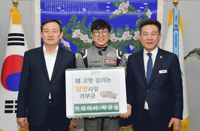 박규승 선수는 “고향사랑기부제를 통해 담양군 지역 발전에 기여할 수 있어 자긍심을 느낀다”며 “앞으로도 다양한 창구를 통해 고향사랑기부제를 알리고, 제안해주신 모터스포츠와 예술 분야의 재능 기부에도 적극적으로 동참하겠다”고 약속했다.
