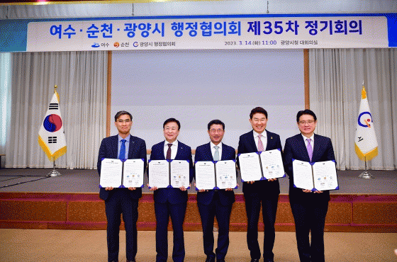 여수시에 따르면 여.순.광 행정협의회는 14일 광양시청 대회의실에서 제35차 정기회의를 열고 3市가 공동으로 협력해 온 연계사업(7건)과 공동협력사업(8건)에 대해 추진상황을 점검하고, 심도 있게 논의했다.