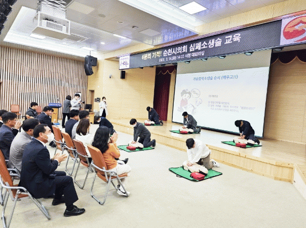 정병회 의장은 “이번 교육을 통해 우리 일상생활 속에서 언제든 발생 가능한 응급상황에 침착하게 대처해 골든타임을 놓치지 않고 시민의 생명을 보호하는데 기여할 수 있을 것”이라며 “주기적인 교육으로 시의원 모두가 심폐소생술의 전문가가 되어 순천시민들의 건강하고 안전한 삶에 큰 도움을 줄 수 있기를 바란다”고 말했다.