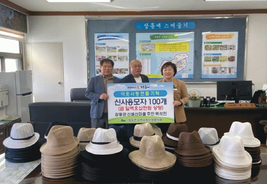 특히 모자공장을 운영하는 처남의 도움으로 신사용 모자 100개를 지역 어르신들을 위해 기부하게 됐다.