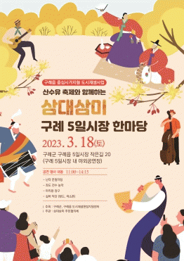 산수유 축제와 함께하는 삼대삼미 구례 5일 시장 한마당 행사는 2020년에 선정된 구례읍 중심시가지형 도시재생 사업의 일환으로 추진하는 사업이다.