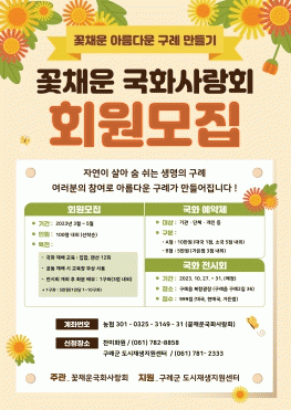 ‘꽃채운 국화사랑회’ 참여 희망자는 구례군 도시재생지원센터에 방문해서 신청하면 된다.