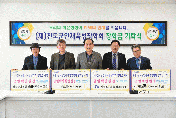 김희수 진도군수는 “모두가 어려운 상황 속에서도 학생들을 위해 장학금을 기탁해 주셔서 깊은 존경과 감사를 표한다”며 “함께 모아주신 소중한 장학금은 미래 교육 진도군을 이끌 지역 인재들에게 꿈과 희망이 될 것”이라고 말했다