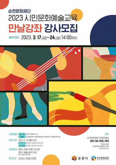 자세한 사항은 순천문화재단 누리집을 확인하거나 전화로 문의하면 된다.
