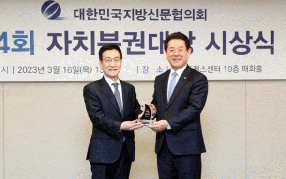 자치분권 대상은 대한민국 자치분권의 조기 실현과 균형발전을 통해 지역 주민의 삶의 질 향상은 물론, 자치분권의 든든한 버팀목인 지역신문 발전에 기여한 단체장이나 정치인에게 수여한다.