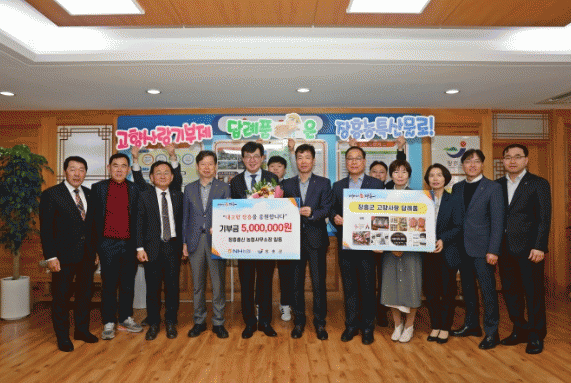 김석찬 NH농협생명 부사장, 정안준 NH남해화학 부사장을 비롯한 임원 8명이 고향사랑기부금 500만원을 기부하며 고향사랑기부제 홍보와 활성화 의지를 다졌다.