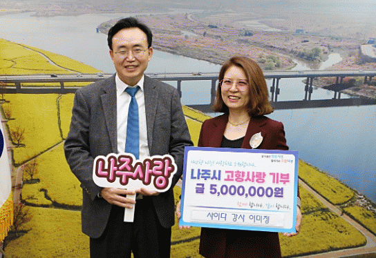 윤병태 나주시장은 “이 강사님의 제2의 고향 사랑에 진심으로 감사드리고 지역 발전과 복지 증진을 위한 소중한 재원으로 사용하겠다”며 “앞으로도 긍정 에너지로 웃음과 희망을 전하는 강사로 승승장구하시길 기대한다”고 화답했다.