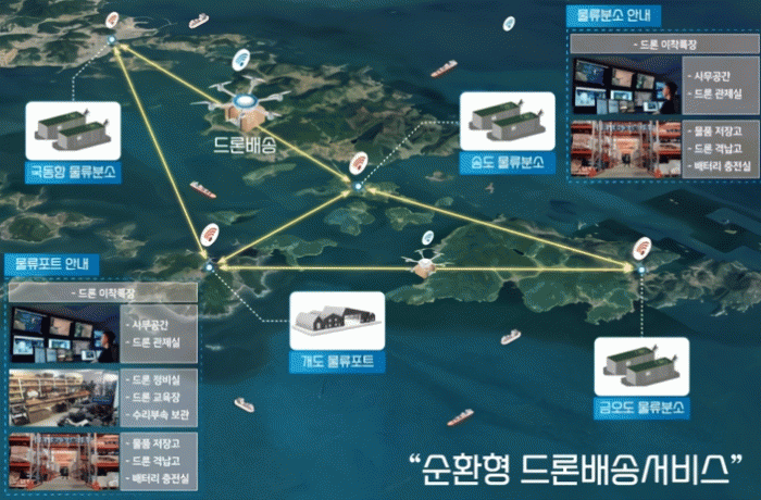 이번 공모사업 선정으로 여수시는 국비 11억 원을 확보했다. (주)해양드론기술, ㈜무지개연구소, ㈜스카이포츠-K 등 3개 기업이 연합체(컨소시엄)를 구성해 여수 화정면 개도리 등 일원에 ▲드론배송경로(섬-섬, 섬-육지) 실증 ▲드론 배송 시스템 구축 등을 추진한다.