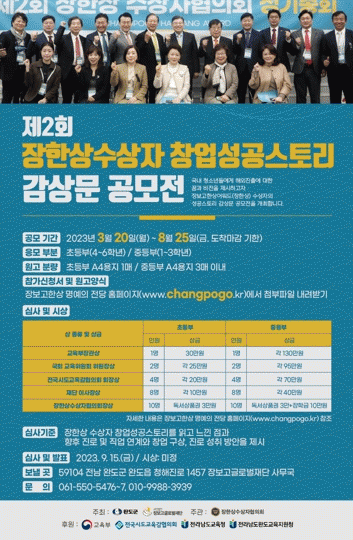 완도군과 사단법인 장보고글로벌재단, 장한상수상자협의회는 “국내 어린이와 청소년들이 해외 진출에 대한 꿈을 갖고 세계 경제를 주도할 수 있는 글로벌 인재로 성장하길 바라는 차원에서 이번 공모전을 개최하게 됐다”라고 밝혔다.