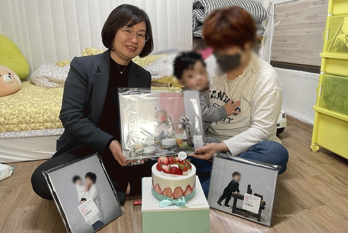 군은 전통과 현대식에 맞춘 돌상 사진과 첫 생일을 기념하는 가족사진까지 함께 촬영해 액자 3개에 넣어 전달했다.