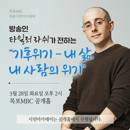 목포시 관계자는 “28일, 오후2시 목포 MBC공개홀에서 펼쳐지는 이번 강좌를 통해 자연과 조화롭게 공존할 수 있는 방법을 함께 고민하는 시간이 되기를 바란다”고 전했다.