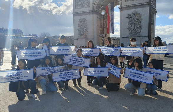학생들은 “우리는 민주주의와 인권, 평화를 사랑하는 대한민국 청소년이다(We are the youth of the Republic of Korea who love democracy, human rights and peace)”라는 구호를 외쳤다. 많은 시민 및 관광객이 뜨거운 박수를 보내며 호응했다.