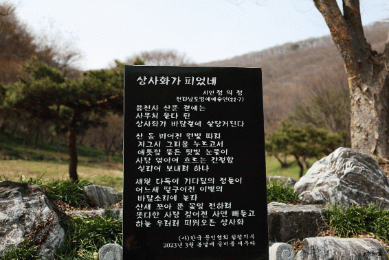 시비에는 ‘거리의 시인’으로 알려진 정의정 작가의 시 ‘상상화가 피었네’가 새겨져 있다.